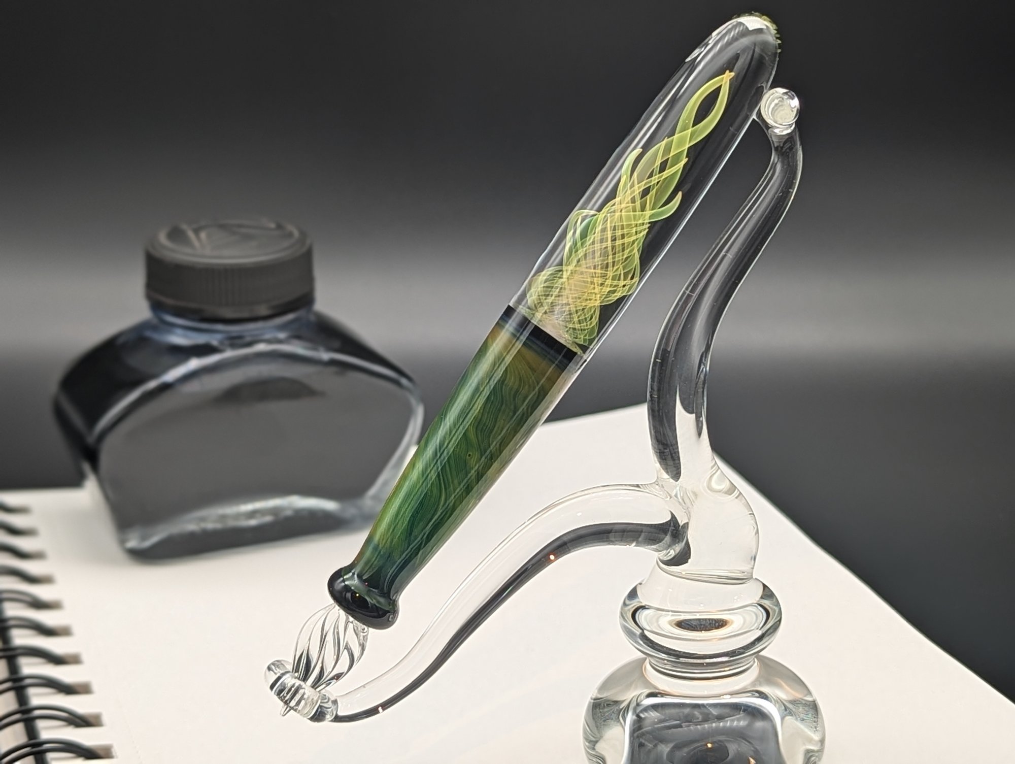 I have decided to go with a more contemporary design. The main reason is that I have always liked the feel of the Mont Blanc style of pen and decided to try it in glass. After the first one that I made, I realized that not only was the shape comfortable to hold, but was also a pleasure to write or draw with. And that is due to the extra weight. So you don't need to press down on the paper at all.